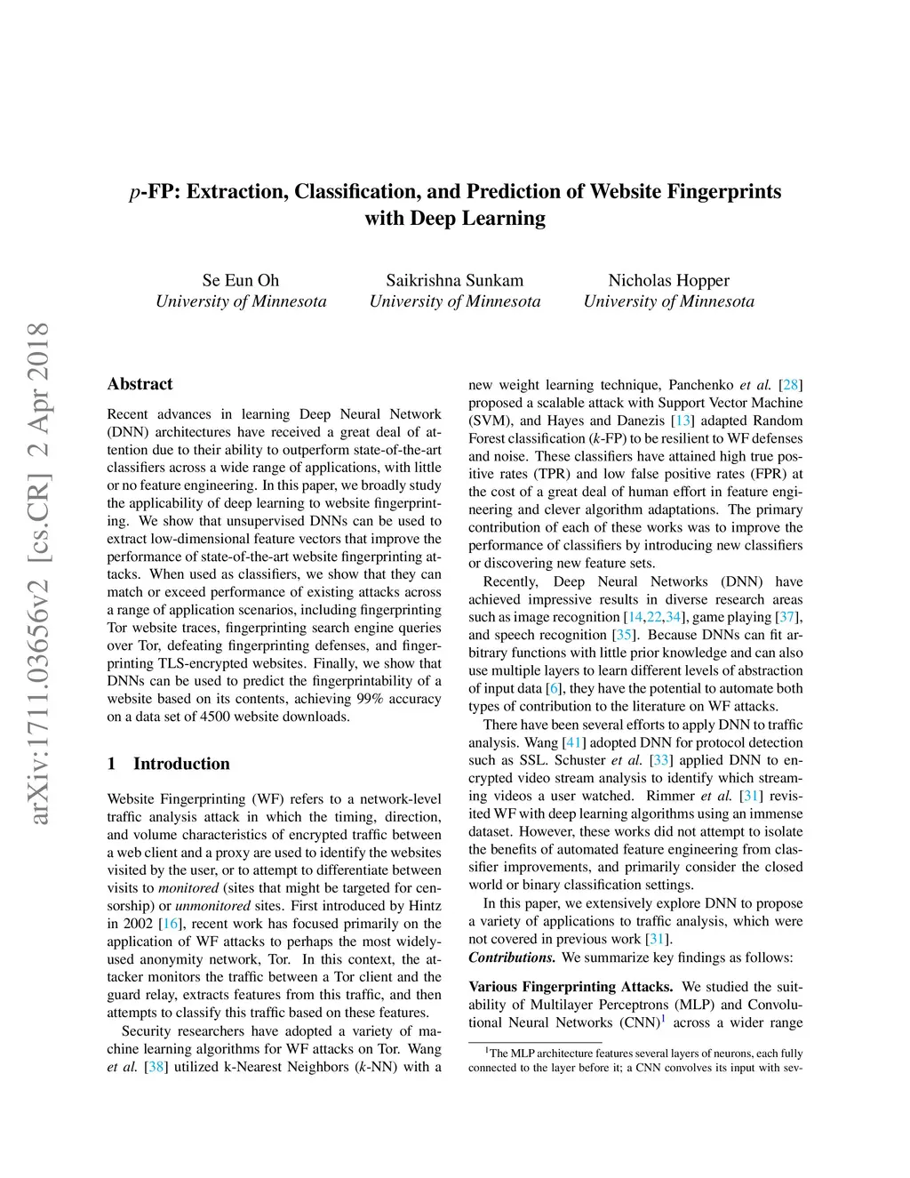p-FP: Extraction, Classification, and Prediction of Website Fingerprints