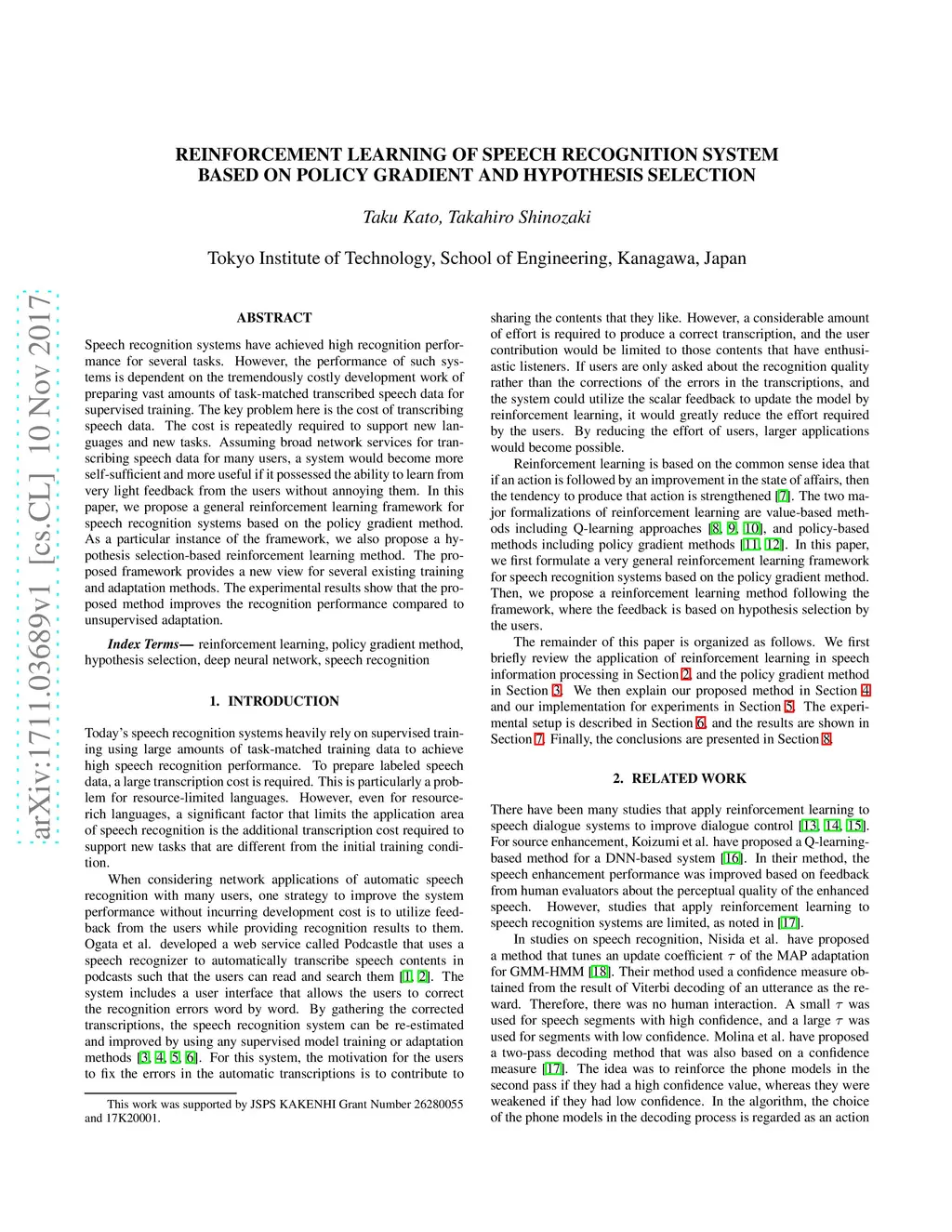 Reinforcement Learning of Speech Recognition System Based on Policy