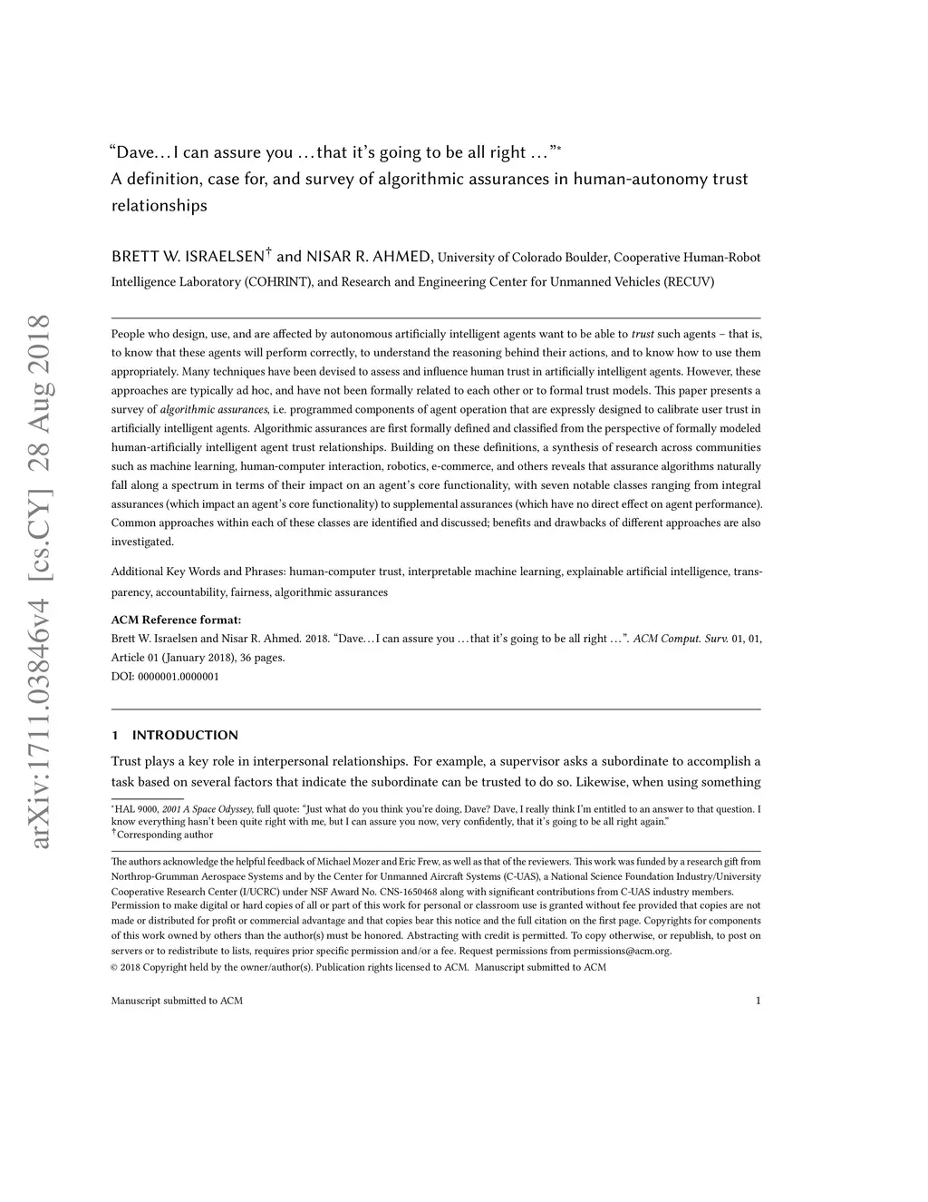definition, case for, and survey of algorithmic assurances in human-autonomy
