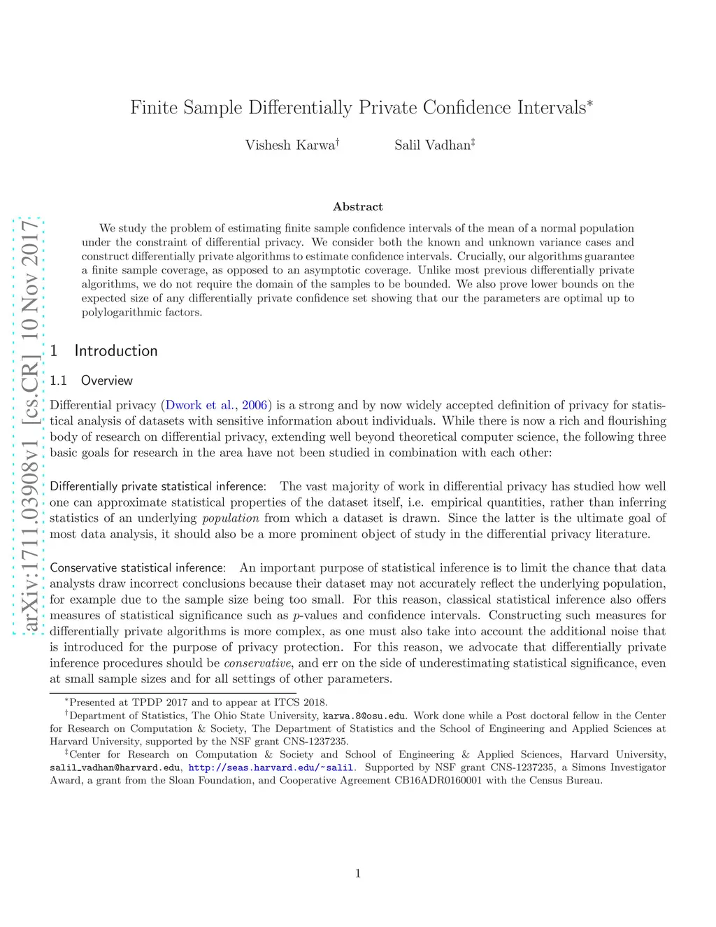 We study the problem of estimating finite sample confidence intervals of the mean of a normal population under the constraint of differential privacy. We consider both the known and unknown variance cases and construct differentially private algorithms to estimate confidence intervals. Crucially, our algorithms guarantee a finite sample coverage, as opposed to an asymptotic coverage. Unlike most previous differentially private algorithms, we do not require the domain of the samples to be bounded. We also prove lower bounds on the expected size of any differentially private confidence set showing that our the parameters are optimal up to polylogarithmic factors.
