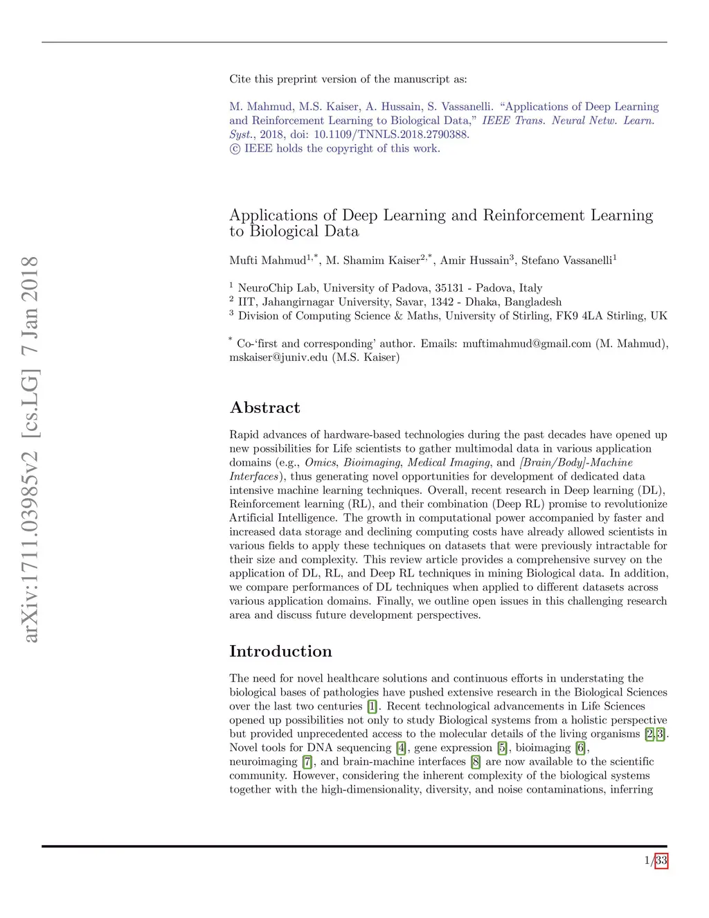 Applications of Deep Learning and Reinforcement Learning to Biological