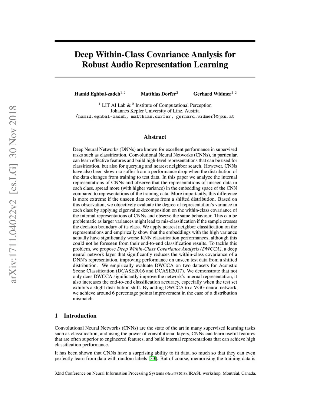 Deep Within-Class Covariance Analysis for Robust Audio Representation