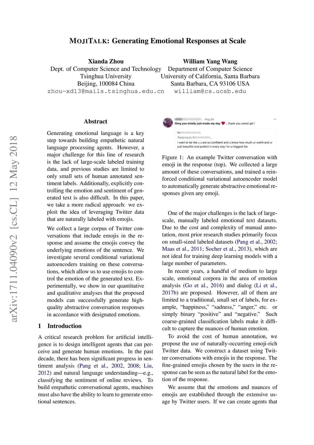 MojiTalk: Generating Emotional Responses at Scale