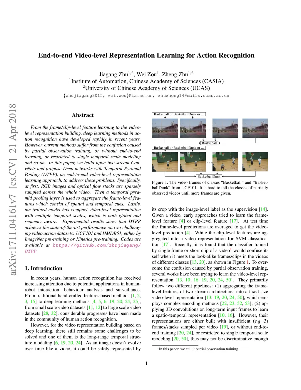 From the frame/clip-level feature learning to the video-level representation building, deep learning methods in action recognition have developed rapidly in recent years. However, current methods suffer from the confusion caused by partial observation training, or without end-to-end learning, or restricted to single temporal scale modeling and so on. In this paper, we build upon two-stream ConvNets and propose Deep networks with Temporal Pyramid Pooling (DTPP), an end-to-end video-level representation learning approach, to address these problems. Specifically, at first, RGB images and optical flow stacks are sparsely sampled across the whole video. Then a temporal pyramid pooling layer is used to aggregate the frame-level features which consist of spatial and temporal cues. Lastly, the trained model has compact video-level representation with multiple temporal scales, which is both global and sequence-aware. Experimental results show that DTPP achieves the state-of-the-art performance on two challenging video action datasets: UCF101 and HMDB51, either by ImageNet pre-training or Kinetics pre-training.