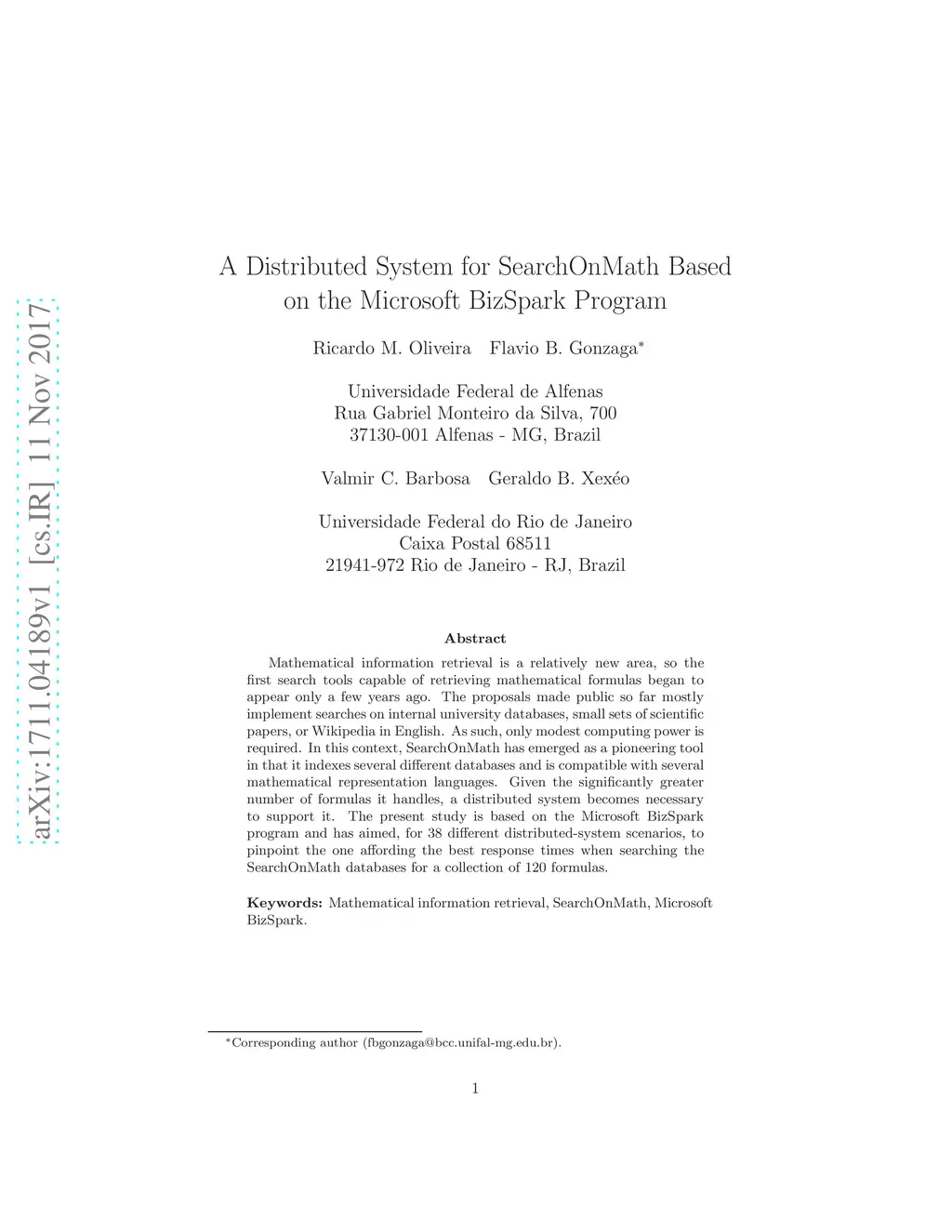 A distributed system for SearchOnMath based on the Microsoft BizSpark