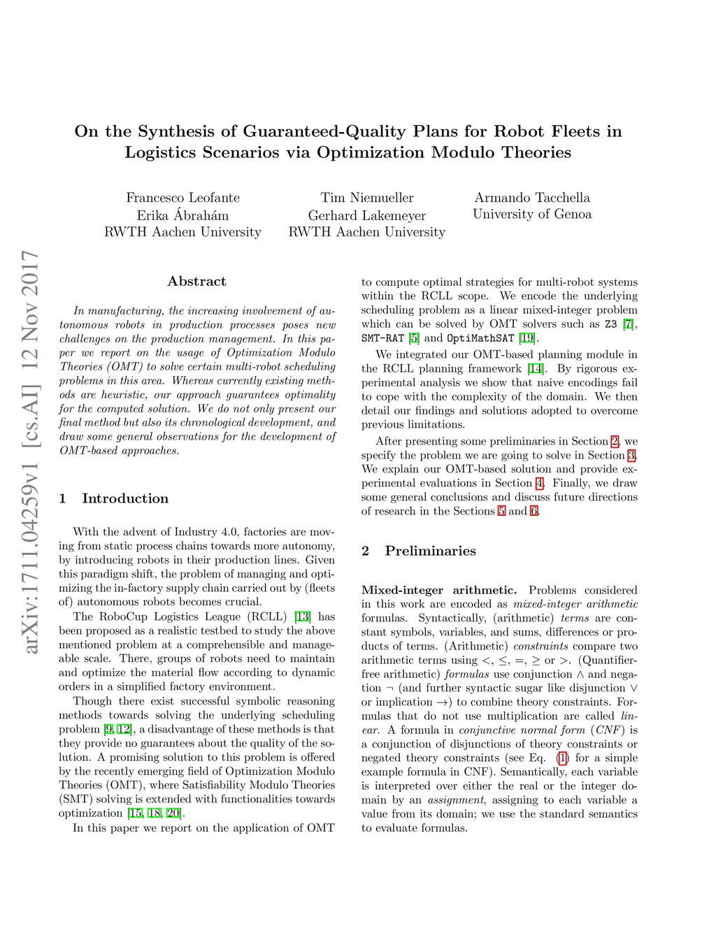 In manufacturing, the increasing involvement of autonomous robots in production processes poses new challenges on the production management. In this paper we report on the usage of Optimization Modulo Theories (OMT) to solve certain multi-robot scheduling problems in this area. Whereas currently existing methods are heuristic, our approach guarantees optimality for the computed solution. We do not only present our final method but also its chronological development, and draw some general observations for the development of OMT-based approaches.