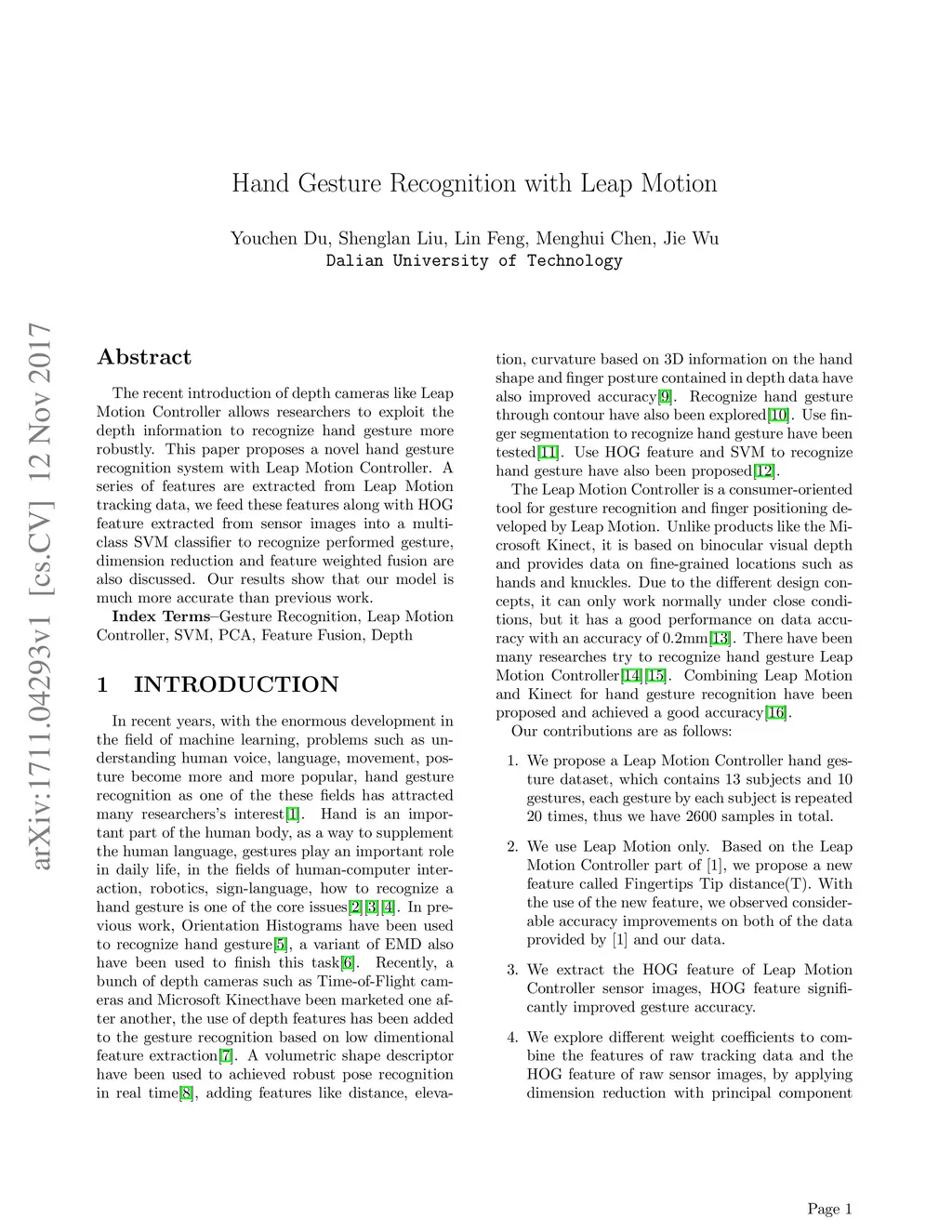 Hand Gesture Recognition with Leap Motion