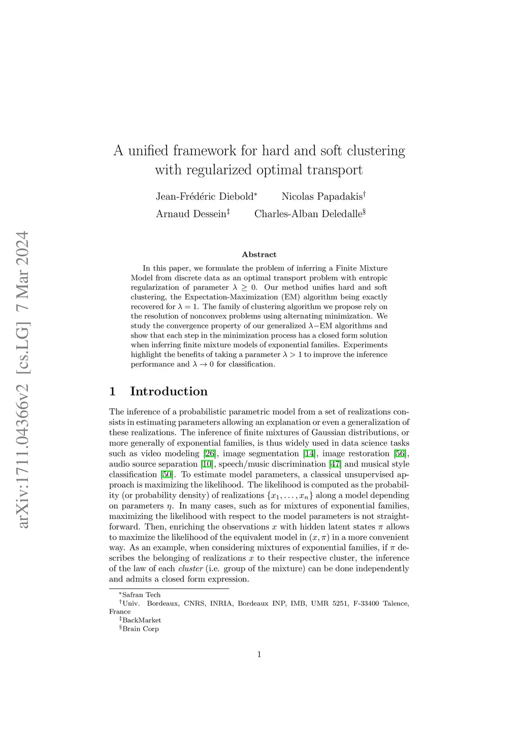 In this paper, we formulate the problem of inferring a Finite Mixture Model from discrete data as an optimal transport problem with entropic regularization of parameter . Our method unifies hard and soft clustering, the Expectation-Maximization (EM) algorithm being exactly recovered for . The family of clustering algorithm we propose rely on the resolution of nonconvex problems using alternating minimization. We study the convergence property of our generalized EM algorithms and show that each step in the minimization process has a closed form solution when inferring finite mixture models of exponential families. Experiments highlight the benefits of taking a parameter to improve the inference performance and for classification.