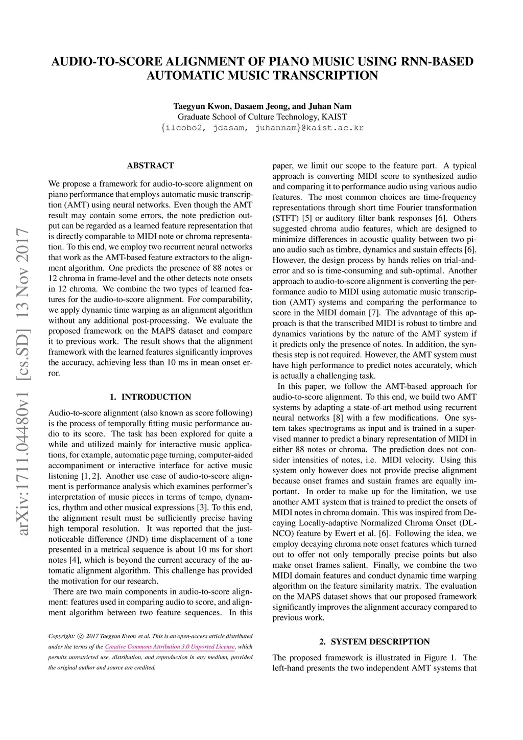Audio-to-score alignment of piano music using RNN-based automatic music