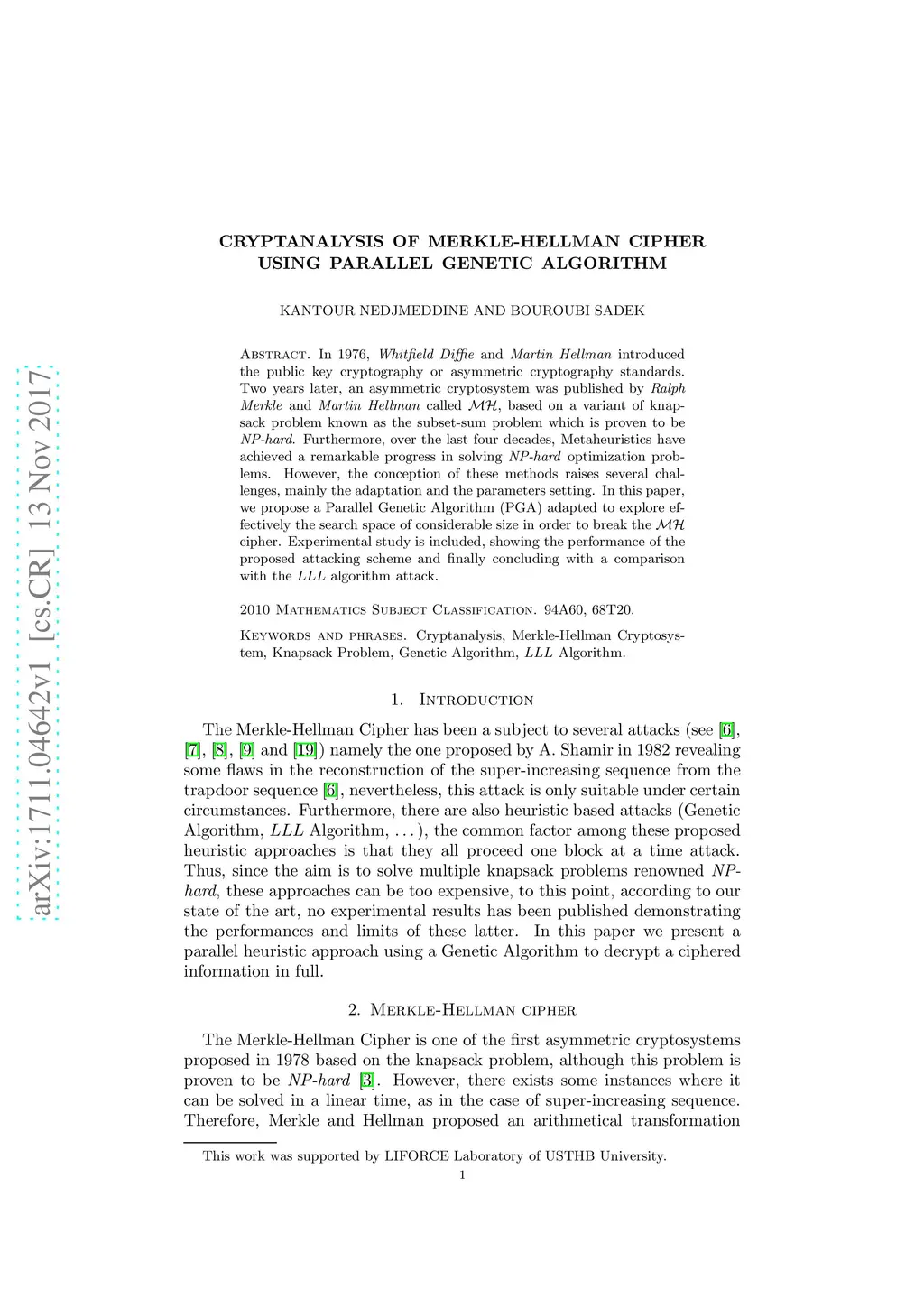 Cryptanalysis of Merkle-Hellman cipher using parallel genetic algorithm