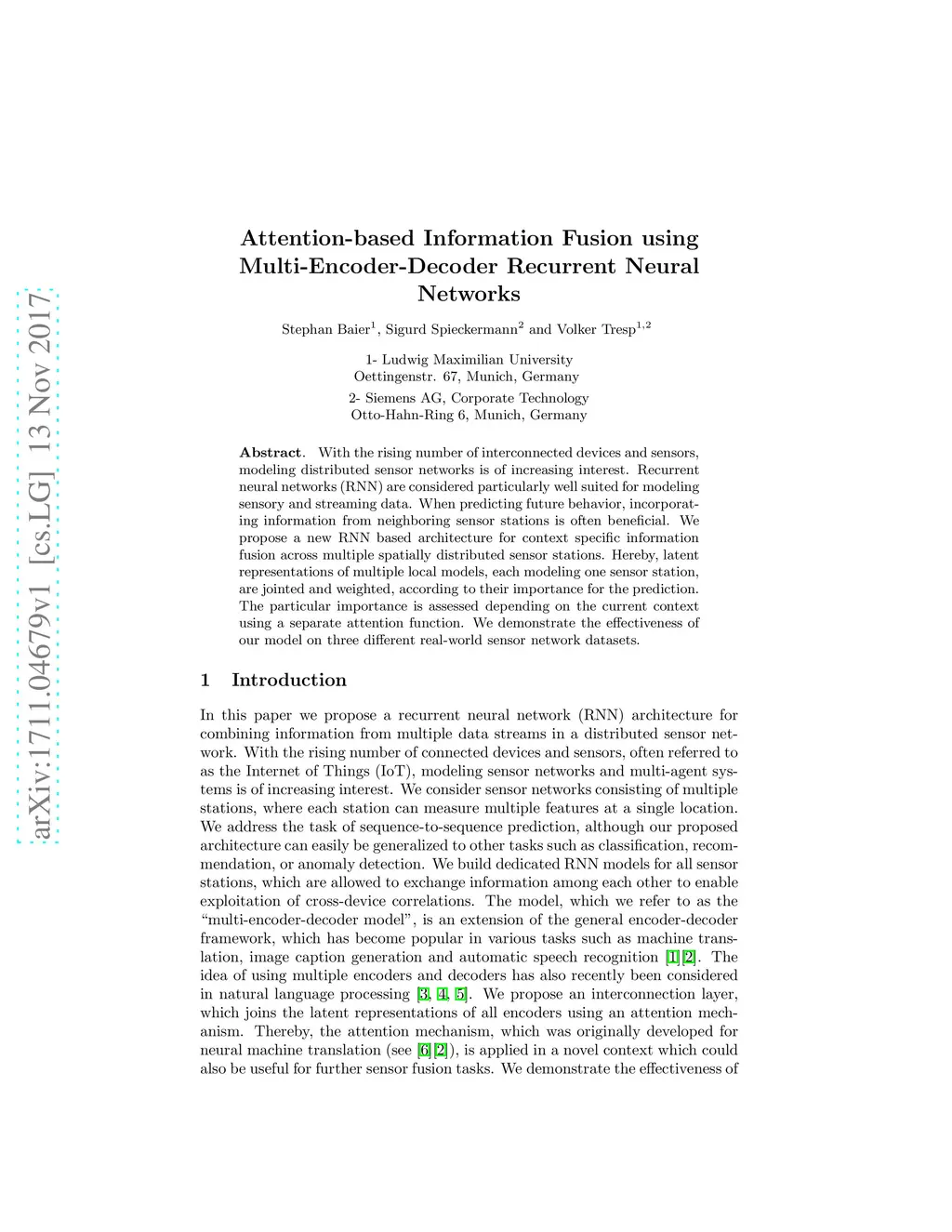 Attention-based Information Fusion using Multi-Encoder-Decoder Recurrent