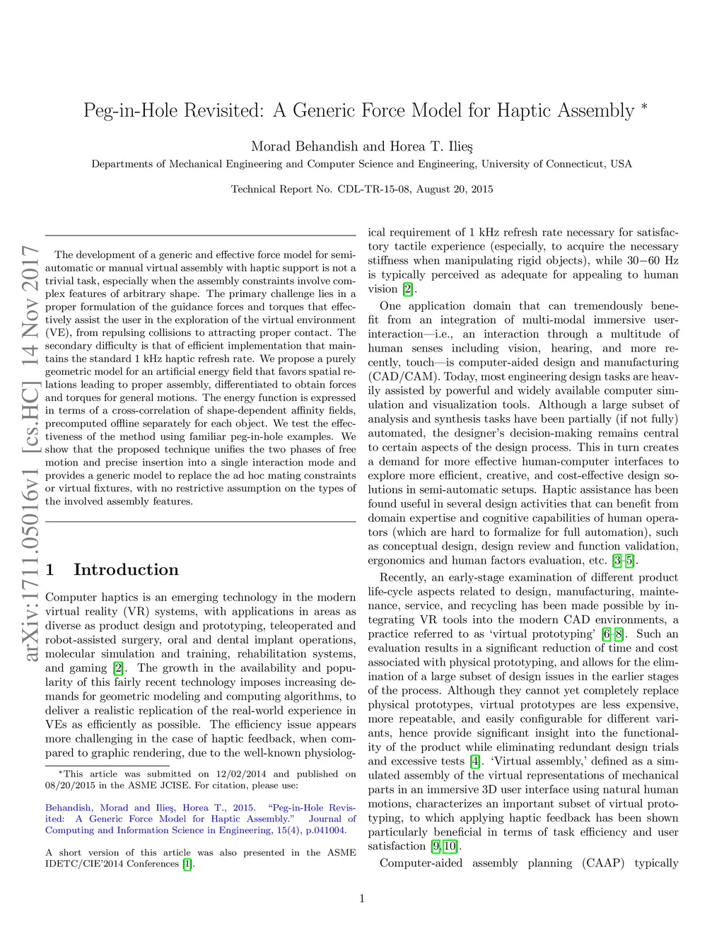 Peg-in-Hole Revisited: A Generic Force Model for Haptic Assembly