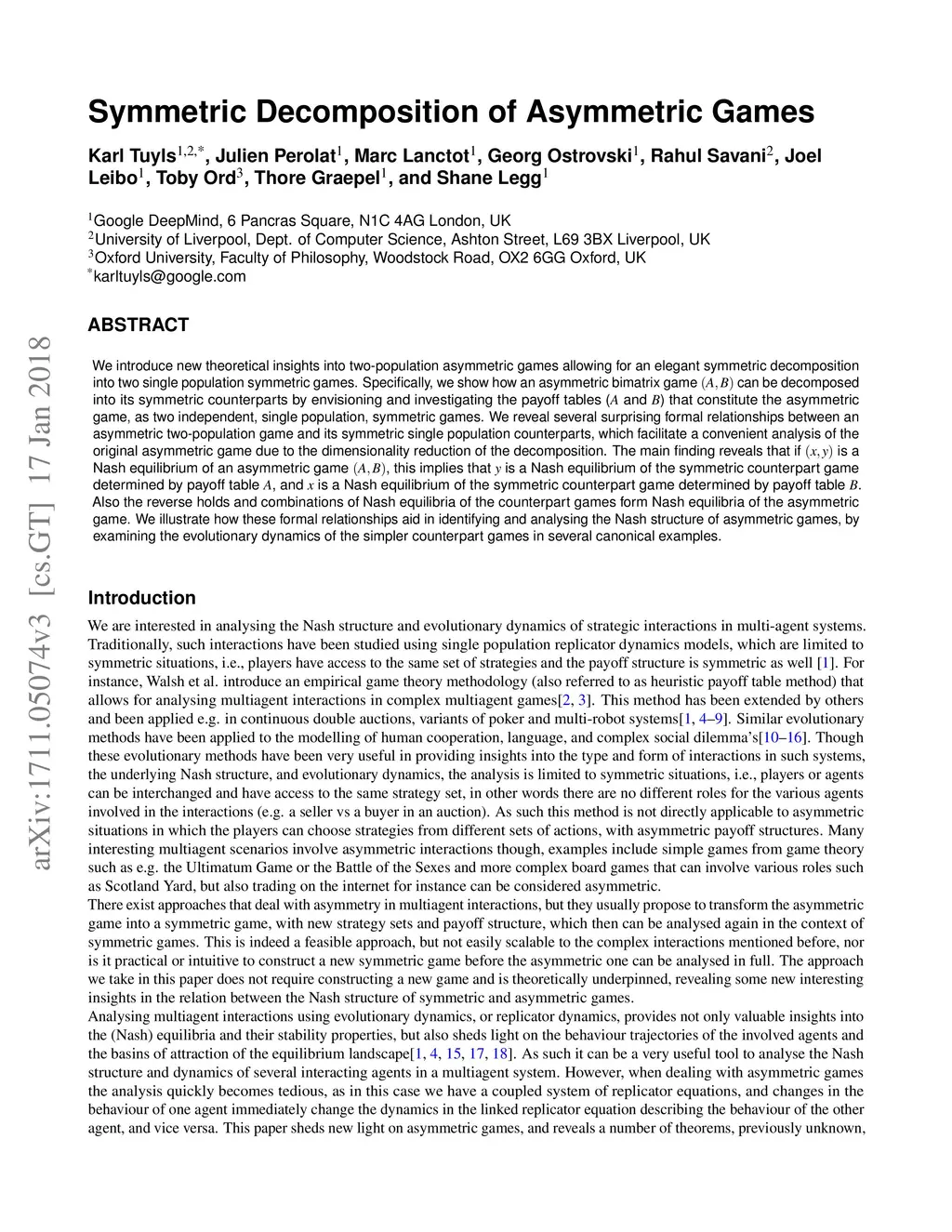 We introduce new theoretical insights into two-population asymmetric games allowing for an elegant symmetric decomposition into two single population symmetric games. Specifically, we show how an asymmetric bimatrix game (A,B) can be decomposed into its symmetric counterparts by envisioning and investigating the payoff tables (A and B) that constitute the asymmetric game, as two independent, single population, symmetric games. We reveal several surprising formal relationships between an asymmetric two-population game and its symmetric single population counterparts, which facilitate a convenient analysis of the original asymmetric game due to the dimensionality reduction of the decomposition. The main finding reveals that if (x,y) is a Nash equilibrium of an asymmetric game (A,B), this implies that y is a Nash equilibrium of the symmetric counterpart game determined by payoff table A, and x is a Nash equilibrium of the symmetric counterpart game determined by payoff table B. Also the reverse holds and combinations of Nash equilibria of the counterpart games form Nash equilibria of the asymmetric game. We illustrate how these formal relationships aid in identifying and analysing the Nash structure of asymmetric games, by examining the evolutionary dynamics of the simpler counterpart games in several canonical examples.