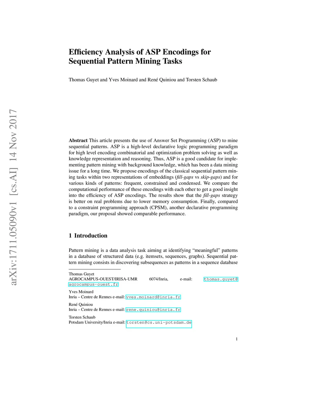 Efficiency Analysis of ASP Encodings for Sequential Pattern Mining Tasks