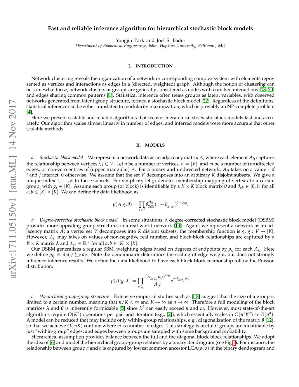Network clustering reveals the organization of a network or corresponding complex system with elements represented as vertices and interactions as edges in a (directed, weighted) graph. Although the notion of clustering can be somewhat loose, network clusters or groups are generally considered as nodes with enriched interactions and edges sharing common patterns. Statistical inference often treats groups as latent variables, with observed networks generated from latent group structure, termed a stochastic block model. Regardless of the definitions, statistical inference can be either translated to modularity maximization, which is provably an NP-complete problem. Here we present scalable and reliable algorithms that recover hierarchical stochastic block models fast and accurately. Our algorithm scales almost linearly in number of edges, and inferred models were more accurate that other scalable methods.