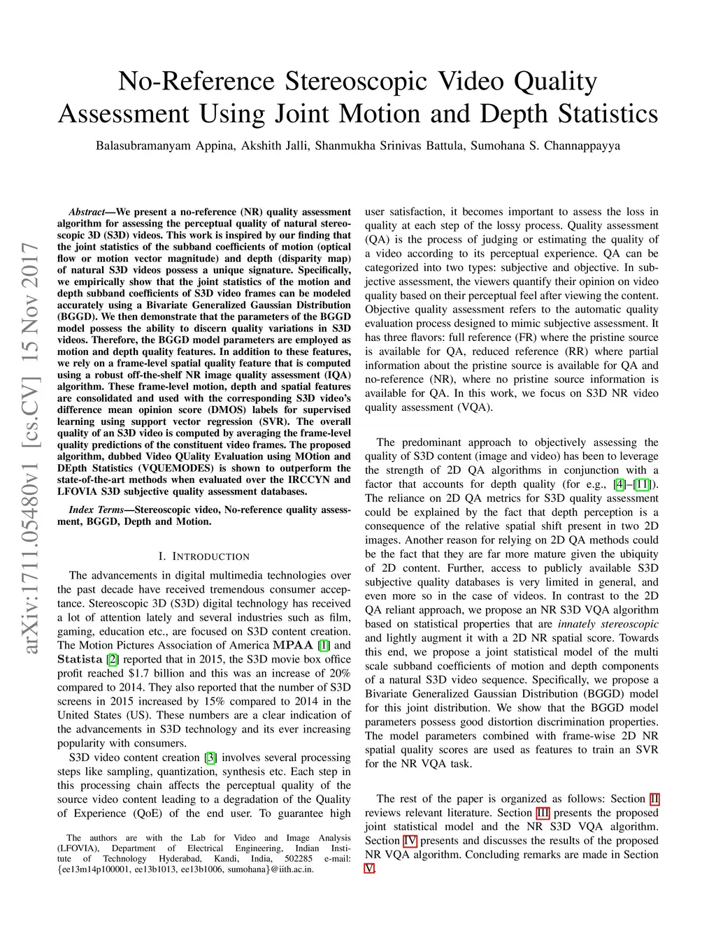 No Reference Stereoscopic Video Quality Assessment Using Joint Motion