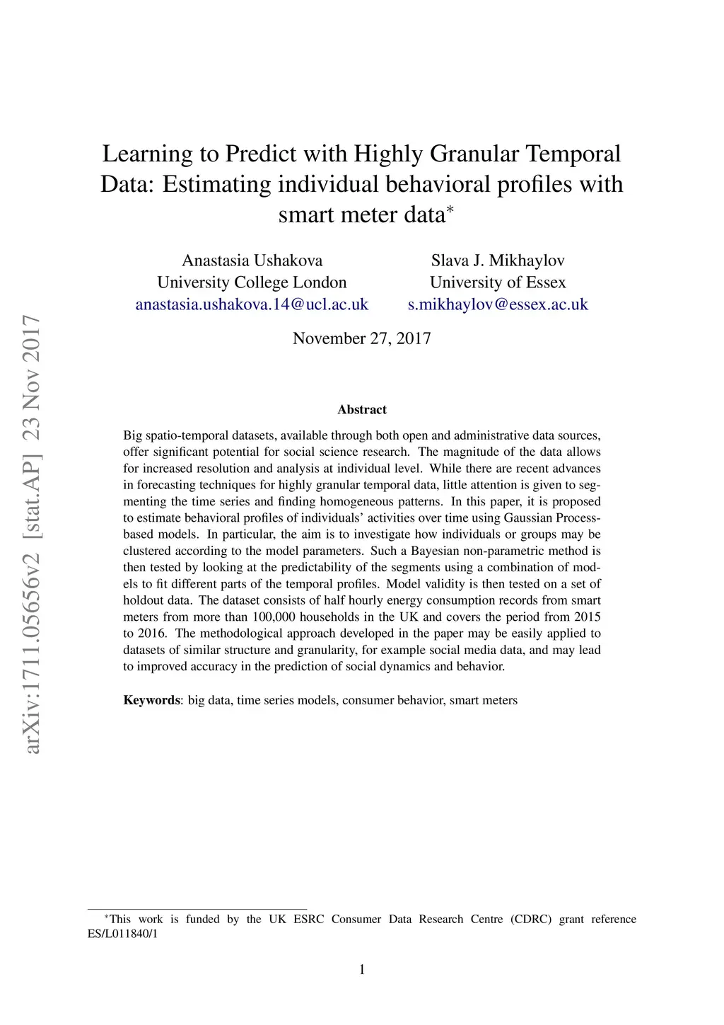 individual behavioral profiles with smart meter data