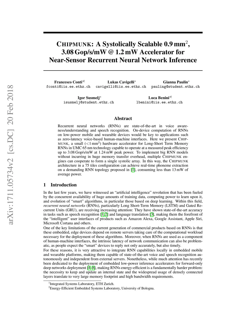 Chipmunk: A Systolically Scalable 0.9 mm, 3.08 Gop/s/mW @ 1.2 mW