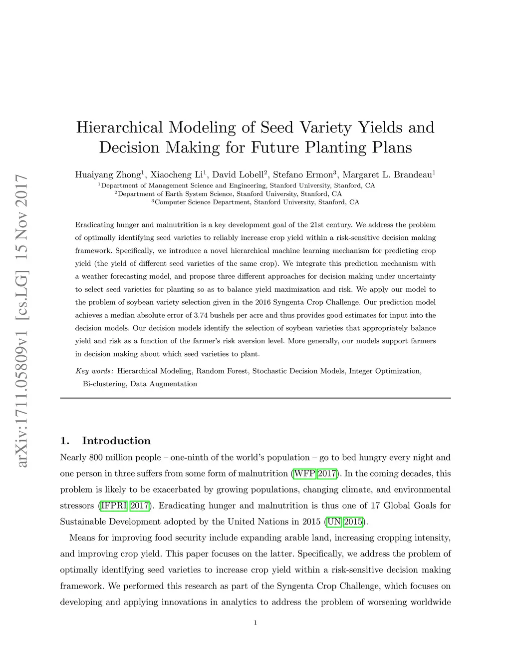 Hierarchical Modeling of Seed Variety Yields and Decision Making for