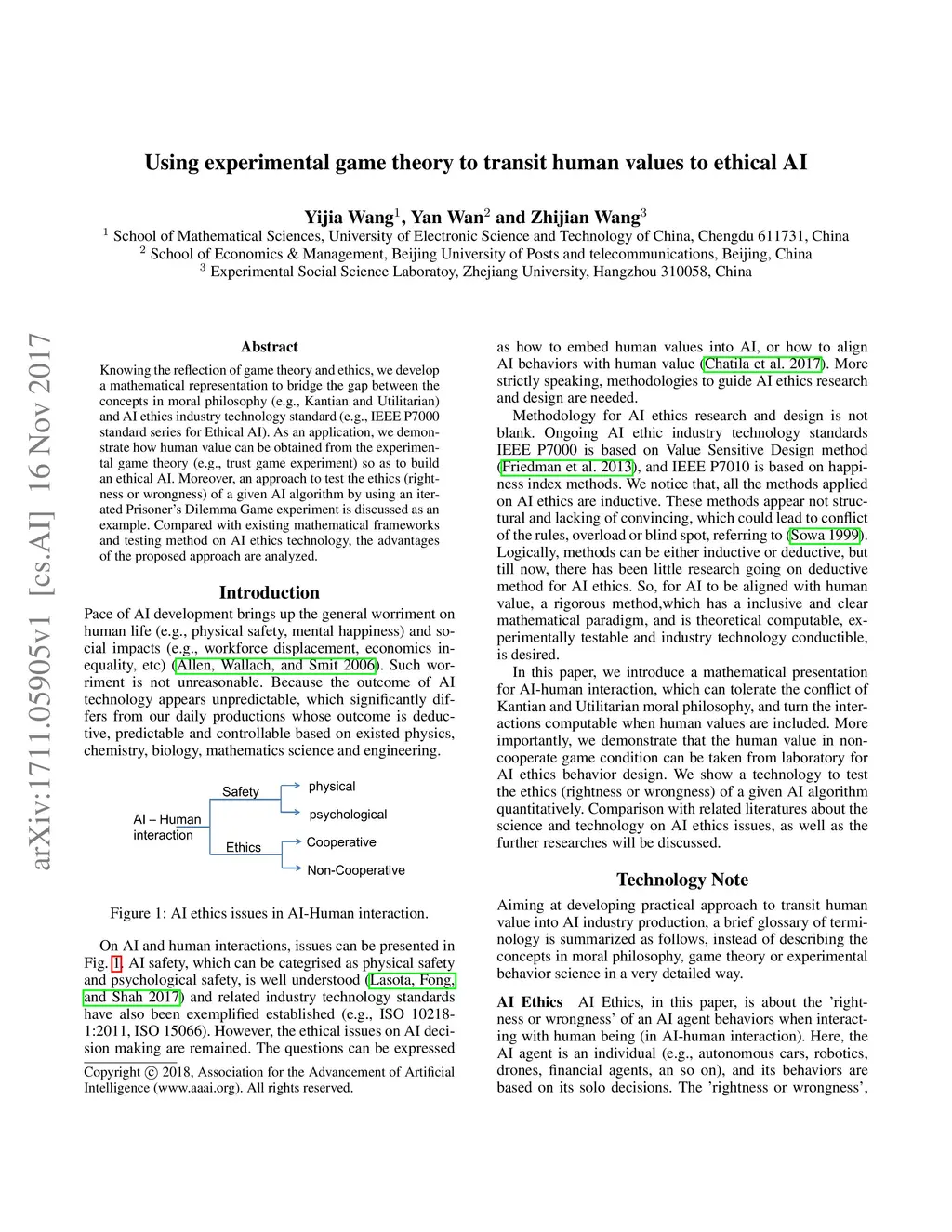 Knowing the reflection of game theory and ethics, we develop a mathematical representation to bridge the gap between the concepts in moral philosophy (e.g., Kantian and Utilitarian) and AI ethics industry technology standard (e.g., IEEE P7000 standard series for Ethical AI). As an application, we demonstrate how human value can be obtained from the experimental game theory (e.g., trust game experiment) so as to build an ethical AI. Moreover, an approach to test the ethics (rightness or wrongness) of a given AI algorithm by using an iterated Prisoner's Dilemma Game experiment is discussed as an example. Compared with existing mathematical frameworks and testing method on AI ethics technology, the advantages of the proposed approach are analyzed.