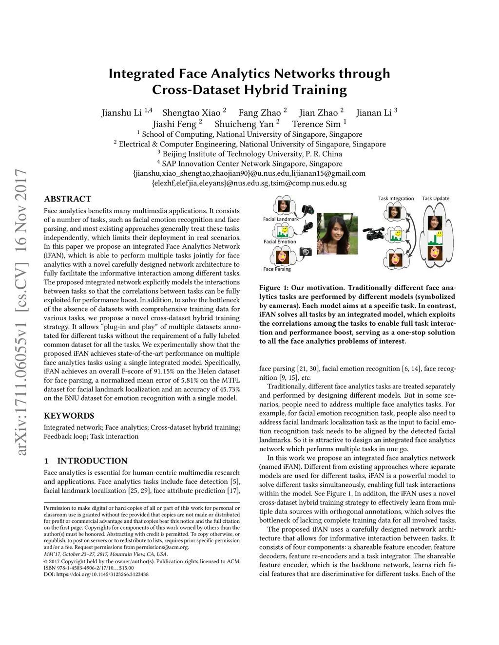 Integrated Face Analytics Networks through Cross-Dataset Hybrid Training