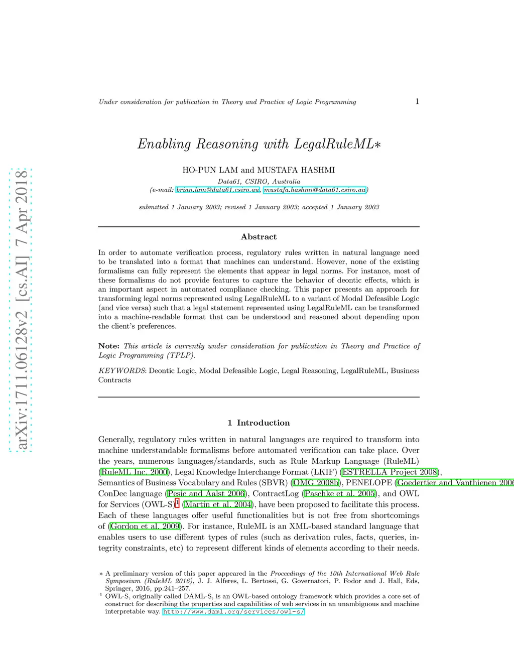 Enabling Reasoning with LegalRuleML