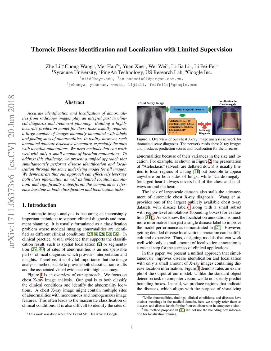 Thoracic Disease Identification and Localization with Limited Supervision