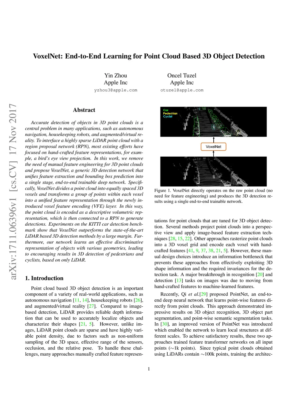 VoxelNet: End-to-End Learning for Point Cloud Based 3D Object Detection