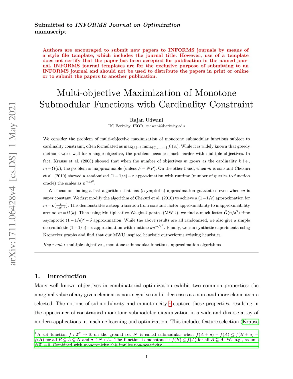 We consider the problem of multi-objective maximization of monotone submodular functions subject to cardinality constraint, often formulated as . While it is widely known that greedy methods work well for a single objective, the problem becomes much harder with multiple objectives. In fact, Krause et al.\ (2008) showed that when the number of objectives grows as the cardinality i.e., , the problem is inapproximable (unless ). On the other hand, when is constant Chekuri et al.\ (2010) showed a randomized approximation with runtime (number of queries to function oracle) . %In fact, the result of Chekuri et al.\ (2010) is for the far more general case of matroid constant. We focus on finding a fast and practical algorithm that has (asymptotic) approximation guarantees even when is super constant. We first modify the algorithm of Chekuri et al.\ (2010) to achieve a approximation for . This demonstrates a steep transition from constant factor approximability to inapproximability around . Then using Multiplicative-Weight-Updates (MWU), we find a much faster time asymptotic approximation. While the above results are all randomized, we also give a simple deterministic approximation with runtime . Finally, we run synthetic experiments using Kronecker graphs and find that our MWU inspired heuristic outperforms existing heuristics.
