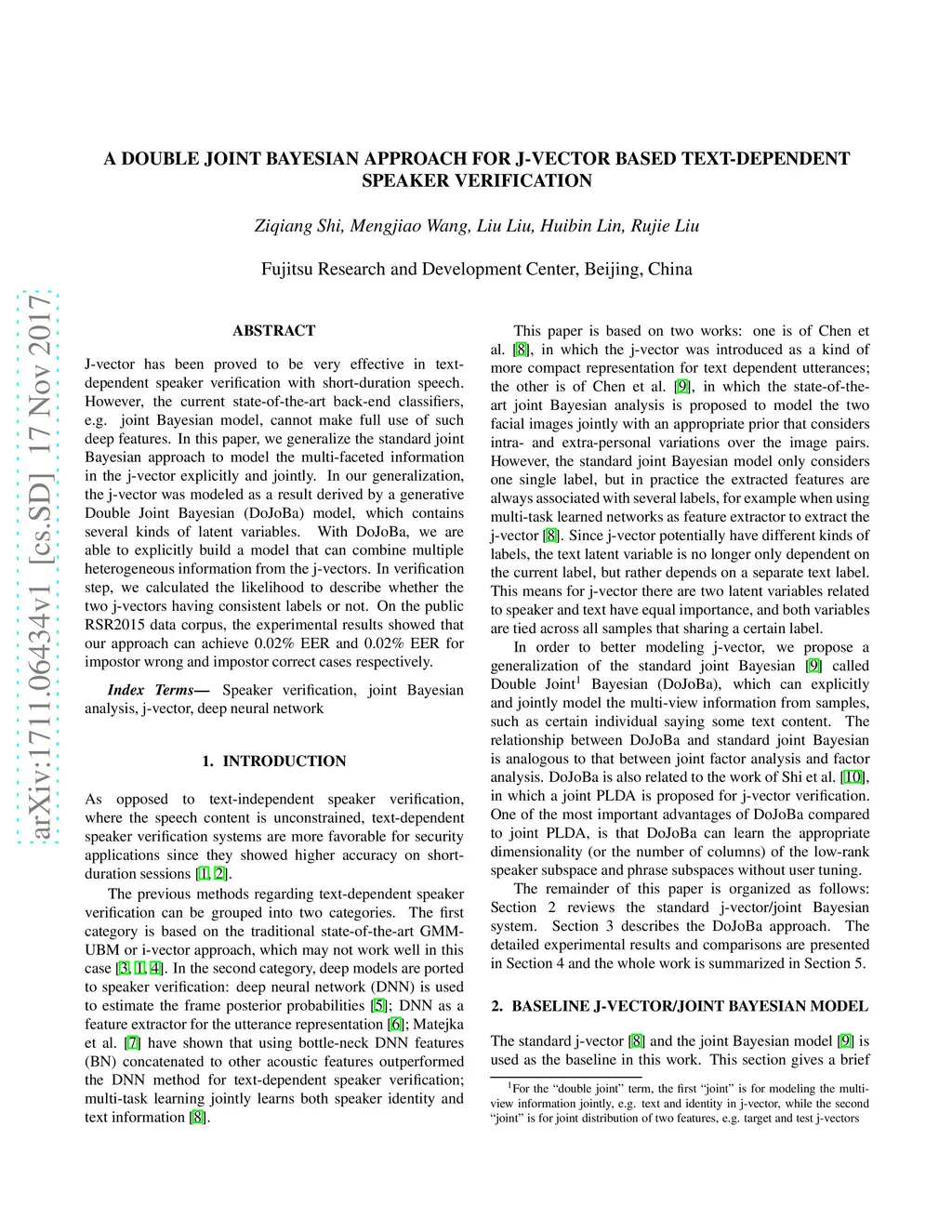 A Double Joint Bayesian Approach for J-Vector Based Text-dependent