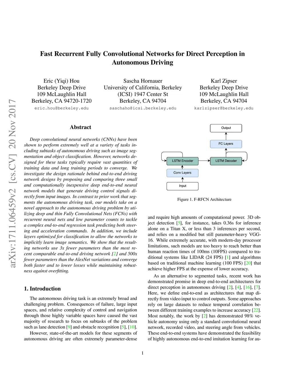 Fast Recurrent Fully Convolutional Networks for Direct Perception in