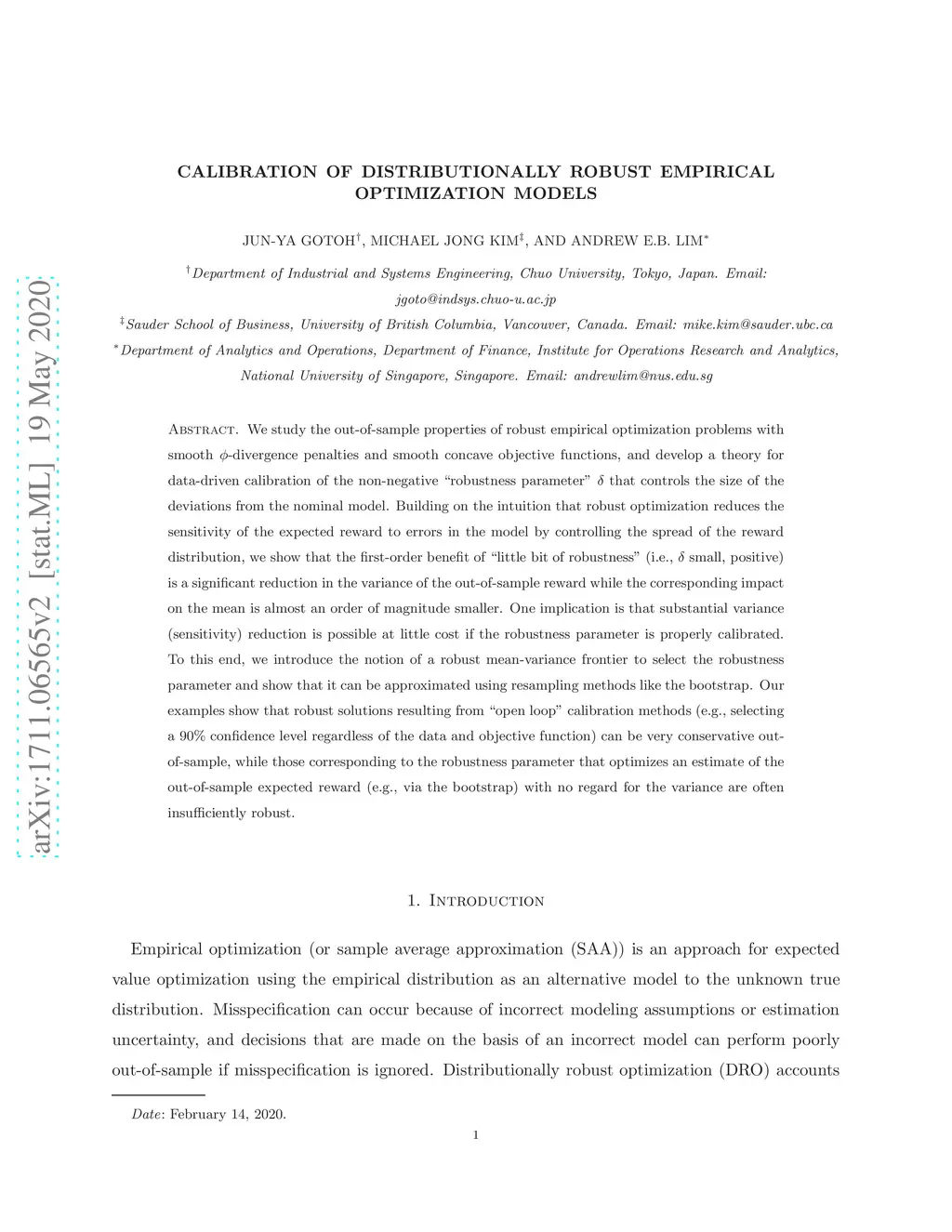 We study the out-of-sample properties of robust empirical optimization problems with smooth -divergence penalties and smooth concave objective functions, and develop a theory for data-driven calibration of the non-negative "robustness parameter" that controls the size of the deviations from the nominal model. Building on the intuition that robust optimization reduces the sensitivity of the expected reward to errors in the model by controlling the spread of the reward distribution, we show that the first-order benefit of ``little bit of robustness" (i.e., small, positive) is a significant reduction in the variance of the out-of-sample reward while the corresponding impact on the mean is almost an order of magnitude smaller. One implication is that substantial variance (sensitivity) reduction is possible at little cost if the robustness parameter is properly calibrated. To this end, we introduce the notion of a robust mean-variance frontier to select the robustness parameter and show that it can be approximated using resampling methods like the bootstrap. Our examples show that robust solutions resulting from "open loop" calibration methods (e.g., selecting a confidence level regardless of the data and objective function) can be very conservative out-of-sample, while those corresponding to the robustness parameter that optimizes an estimate of the out-of-sample expected reward (e.g., via the bootstrap) with no regard for the variance are often insufficiently robust.