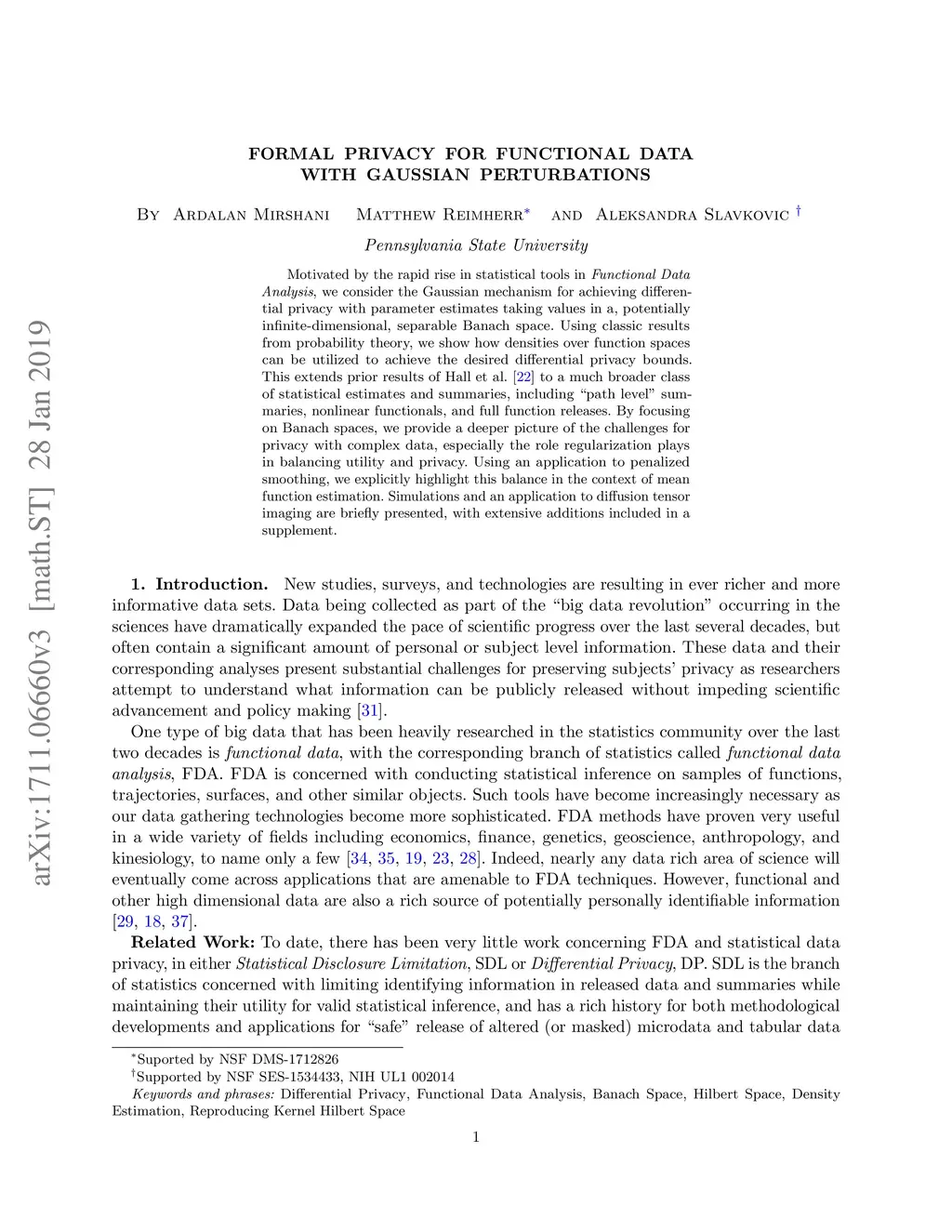 Functional data analysis, FDA, as well as other branches of statistics and machine learning often deal with function valued parameters. Functional data and/or functional parameters may contain unexpectedly large amounts of personally identifying information, and thus developing a privacy framework for these areas is critical in the era of big data. In statistical privacy (or statistical disclosure control) the goal is to minimize the potential for identification of individual records or sensitive characteristics while at the same time ensuring that the released information provides accurate and valid statistical inference. Differential Privacy, DP, has emerged as a mathematically rigorous definition of risk and more broadly as a framework for releasing privacy enhanced versions of a statistical summary. In this paper, we develop an extensive theory for achieving DP with functional data or function valued parameters more generally. Our theoretical framework is based on densities over function spaces, which is of independent interest to FDA researchers, as densities have proven to be challenging to define and utilize for FDA models. For statistical disclosure control, we demonstrate how even small amounts of over smoothing or regularizing can produce releases with substantially improved utility. We carry out extensive simulations to examine the utility of privacy enhanced releases and consider applications to Diffusion Tensor imaging and high-resolution 3D facial imaging.