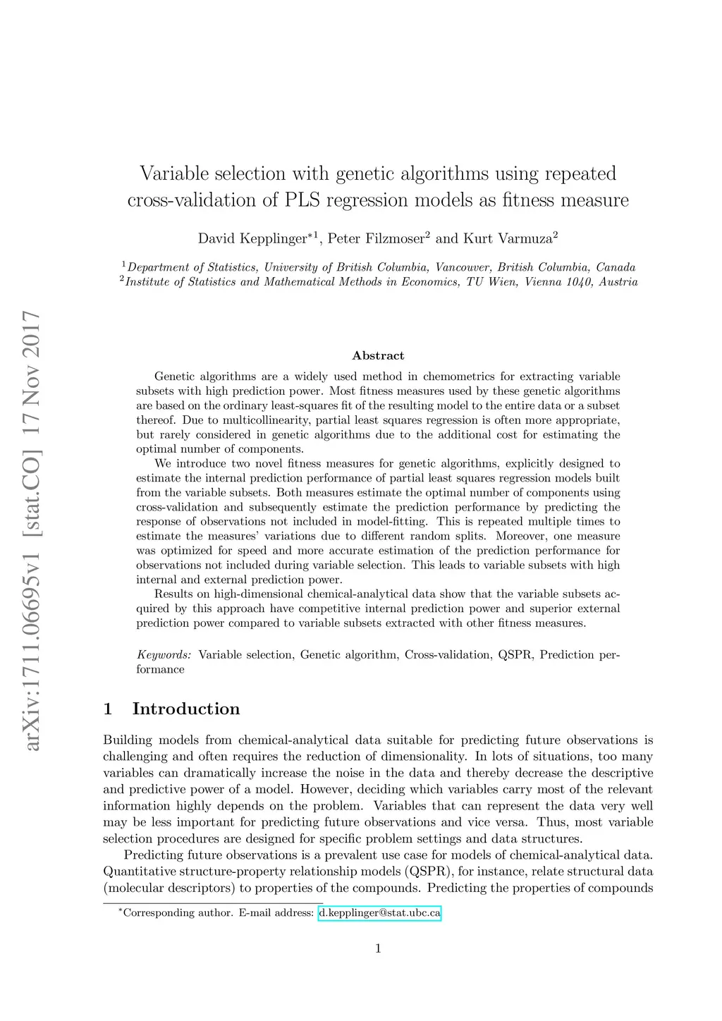 Genetic algorithms are a widely used method in chemometrics for extracting variable subsets with high prediction power. Most fitness measures used by these genetic algorithms are based on the ordinary least-squares fit of the resulting model to the entire data or a subset thereof. Due to multicollinearity, partial least squares regression is often more appropriate, but rarely considered in genetic algorithms due to the additional cost for estimating the optimal number of components. We introduce two novel fitness measures for genetic algorithms, explicitly designed to estimate the internal prediction performance of partial least squares regression models built from the variable subsets. Both measures estimate the optimal number of components using cross-validation and subsequently estimate the prediction performance by predicting the response of observations not included in model-fitting. This is repeated multiple times to estimate the measures' variations due to different random splits. Moreover, one measure was optimized for speed and more accurate estimation of the prediction performance for observations not included during variable selection. This leads to variable subsets with high internal and external prediction power. Results on high-dimensional chemical-analytical data show that the variable subsets acquired by this approach have competitive internal prediction power and superior external prediction power compared to variable subsets extracted with other fitness measures.