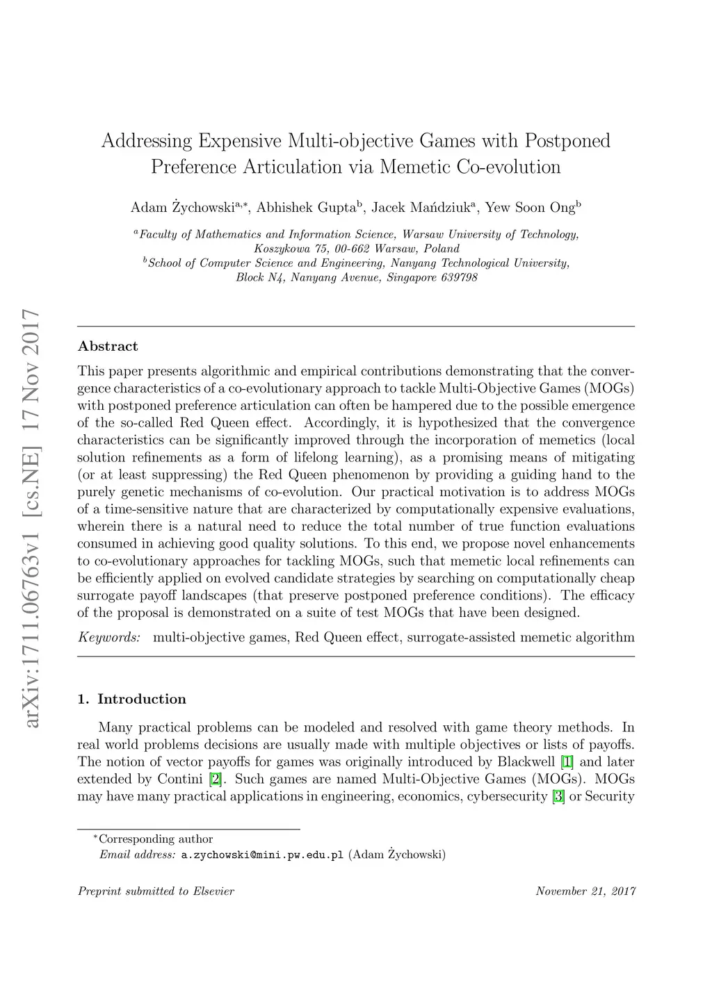 This paper presents algorithmic and empirical contributions demonstrating that the convergence characteristics of a co-evolutionary approach to tackle Multi-Objective Games (MOGs) with postponed preference articulation can often be hampered due to the possible emergence of the so-called Red Queen effect. Accordingly, it is hypothesized that the convergence characteristics can be significantly improved through the incorporation of memetics (local solution refinements as a form of lifelong learning), as a promising means of mitigating (or at least suppressing) the Red Queen phenomenon by providing a guiding hand to the purely genetic mechanisms of co-evolution. Our practical motivation is to address MOGs of a time-sensitive nature that are characterized by computationally expensive evaluations, wherein there is a natural need to reduce the total number of true function evaluations consumed in achieving good quality solutions. To this end, we propose novel enhancements to co-evolutionary approaches for tackling MOGs, such that memetic local refinements can be efficiently applied on evolved candidate strategies by searching on computationally cheap surrogate payoff landscapes (that preserve postponed preference conditions). The efficacy of the proposal is demonstrated on a suite of test MOGs that have been designed.