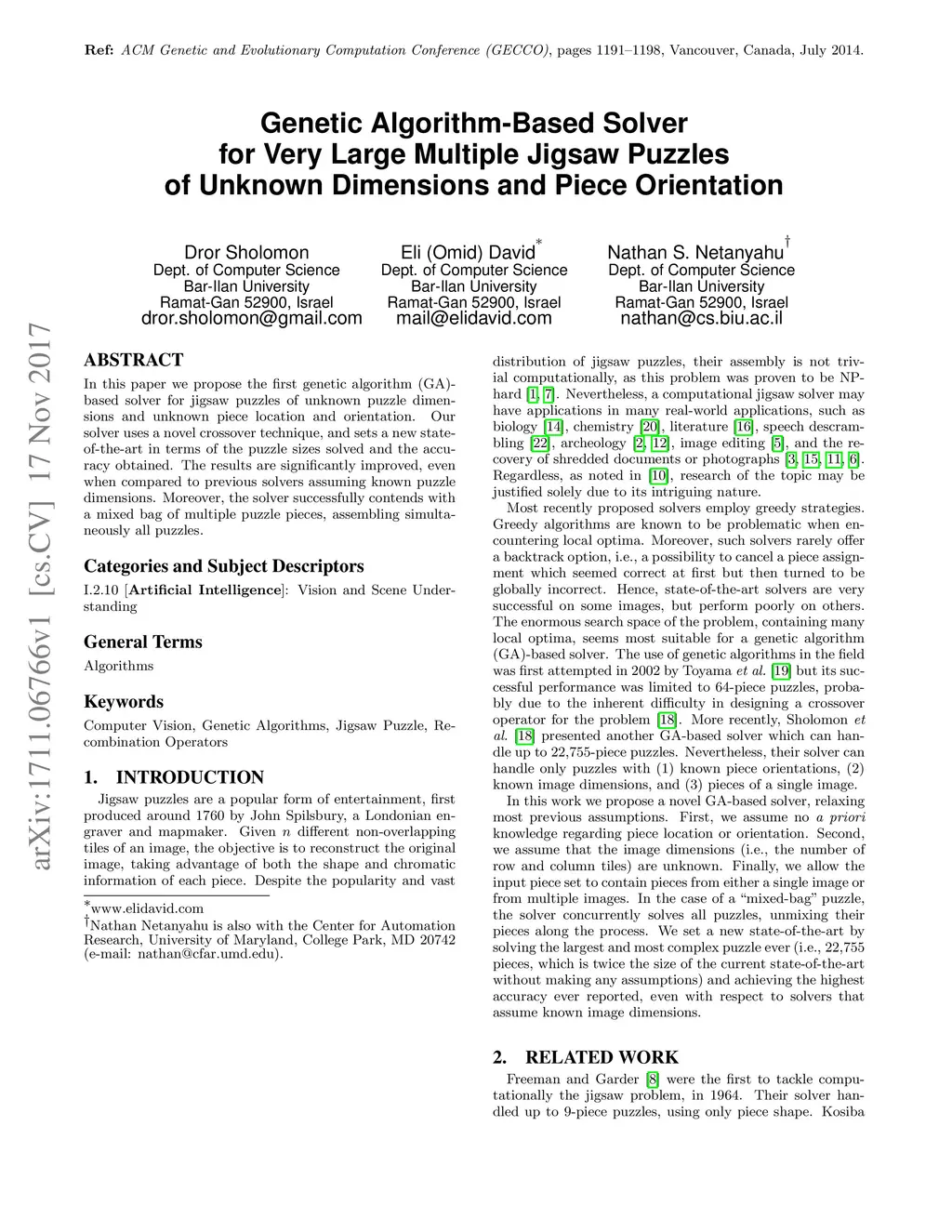Genetic Algorithm-Based Solver for Very Large Multiple Jigsaw Puzzles of