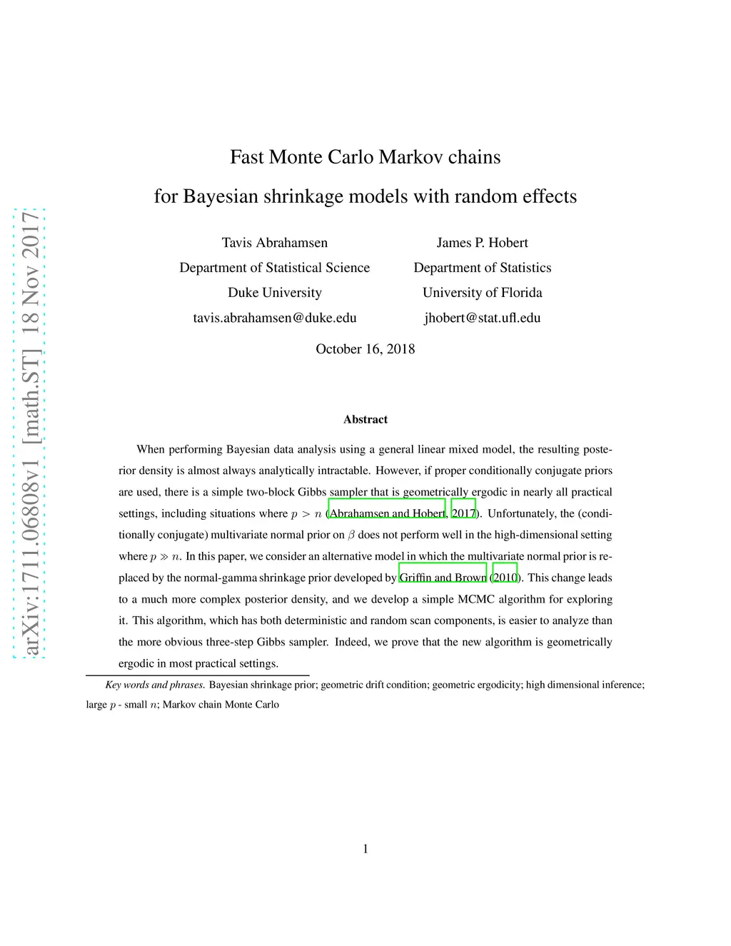 Fast Monte Carlo Markov chains for Bayesian shrinkage models with random