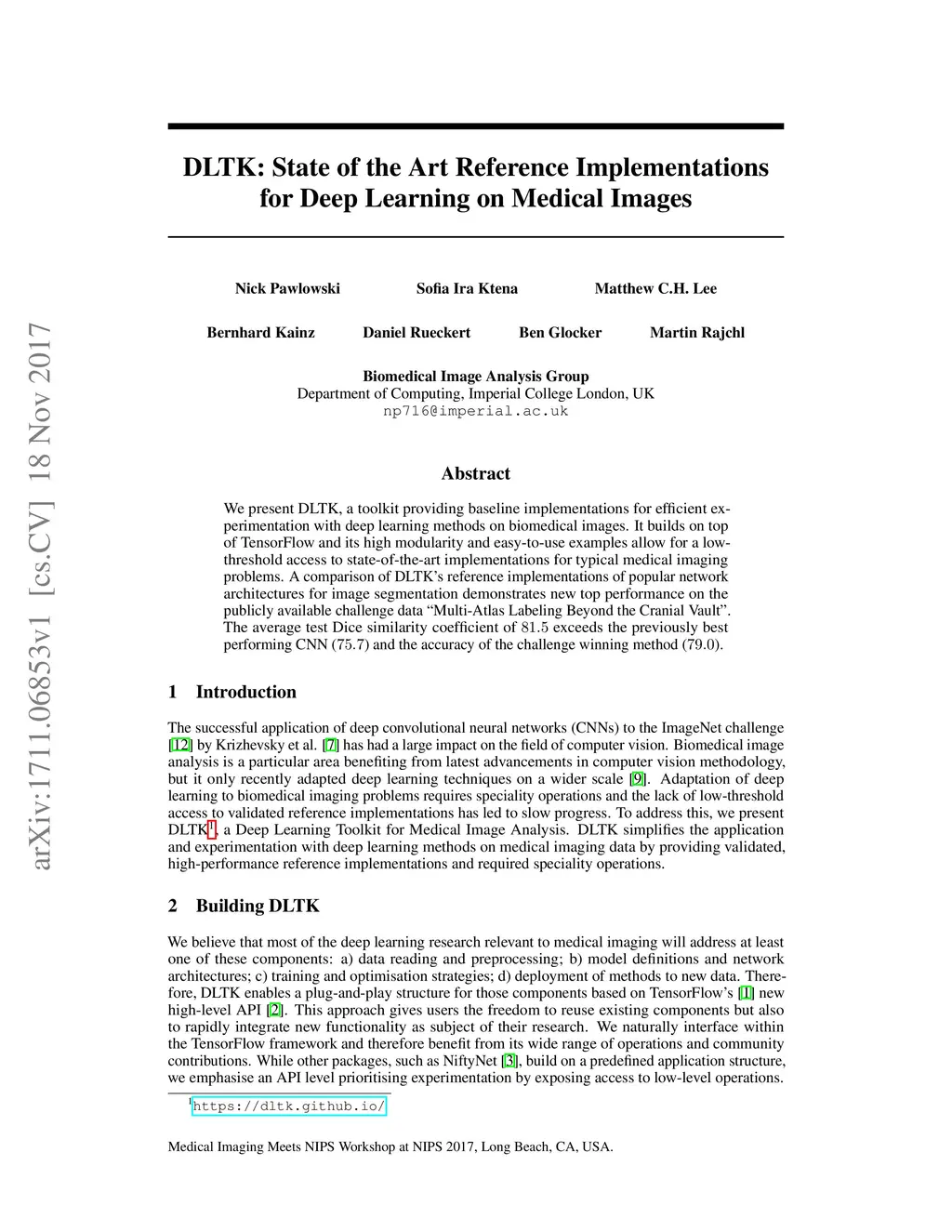 DLTK: State of the Art Reference Implementations for Deep Learning on