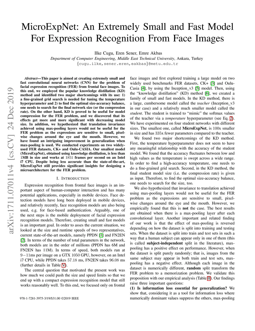 MicroExpNet: An Extremely Small and Fast Model For Expression
