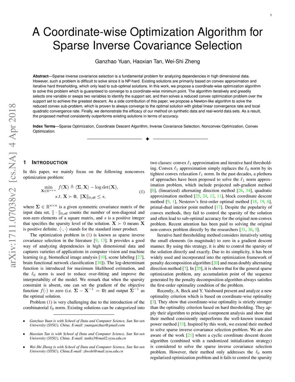 A Coordinate-wise Optimization Algorithm for Sparse Inverse Covariance