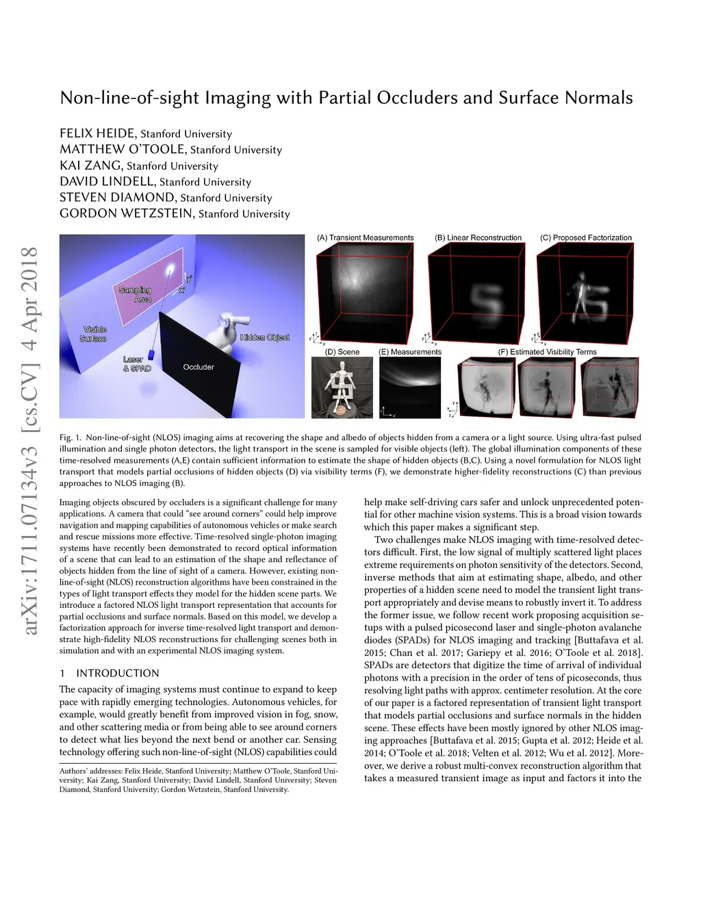 Imaging objects obscured by occluders is a significant challenge for many applications. A camera that could "see around corners" could help improve navigation and mapping capabilities of autonomous vehicles or make search and rescue missions more effective. Time-resolved single-photon imaging systems have recently been demonstrated to record optical information of a scene that can lead to an estimation of the shape and reflectance of objects hidden from the line of sight of a camera. However, existing non-line-of-sight (NLOS) reconstruction algorithms have been constrained in the types of light transport effects they model for the hidden scene parts. We introduce a factored NLOS light transport representation that accounts for partial occlusions and surface normals. Based on this model, we develop a factorization approach for inverse time-resolved light transport and demonstrate high-fidelity NLOS reconstructions for challenging scenes both in simulation and with an experimental NLOS imaging system.