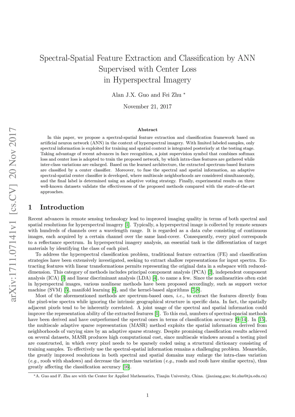 with Center Loss in Hyperspectral Imagery