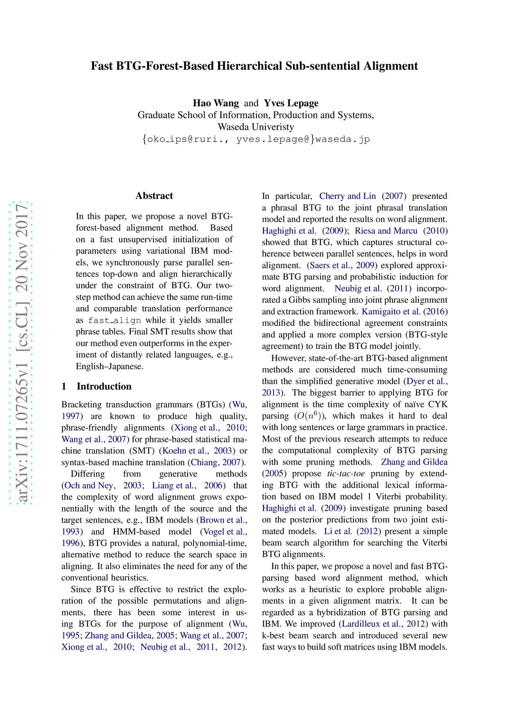 Fast BTG-Forest-Based Hierarchical Sub-sentential Alignment