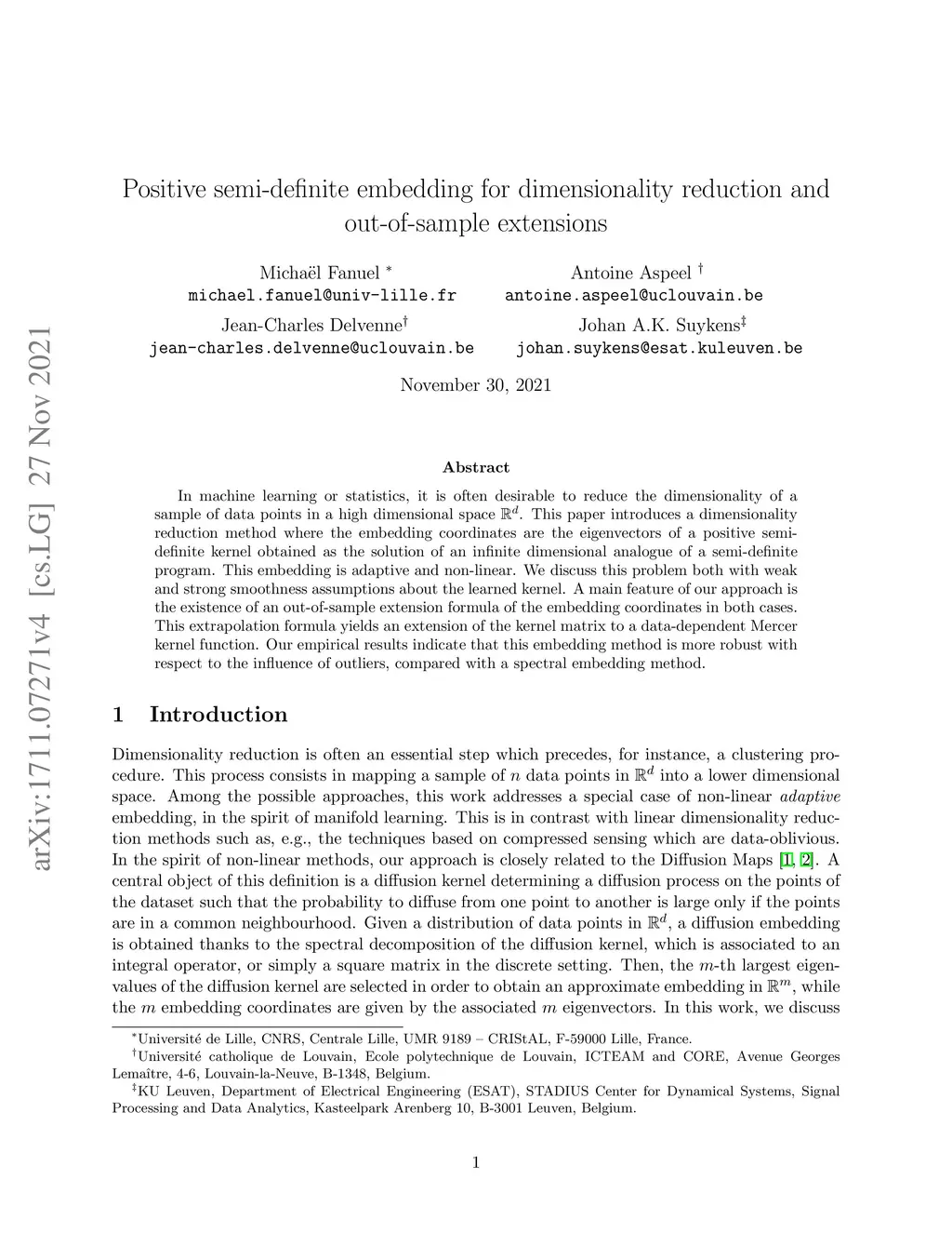 Positive semi-definite embedding for dimensionality reduction and