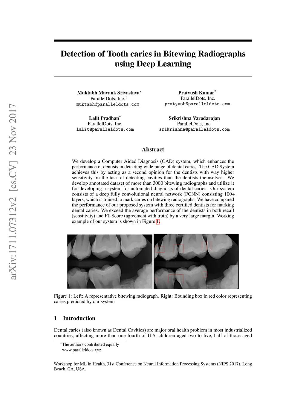 Detection of Tooth caries in Bitewing Radiographs using Deep Learning