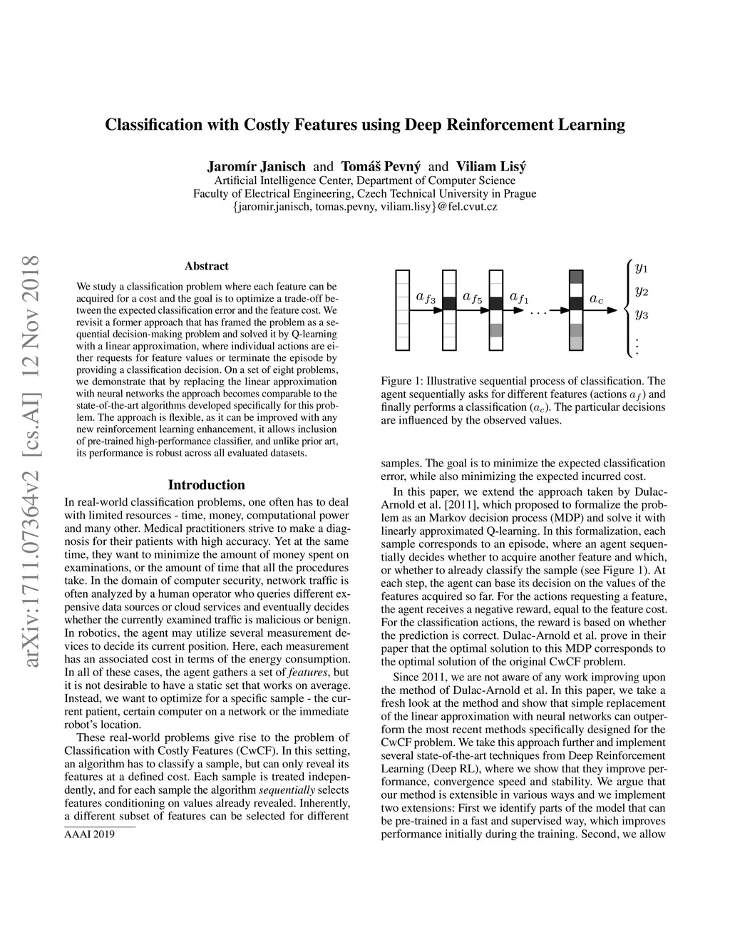 Classification with Costly Features using Deep Reinforcement Learning