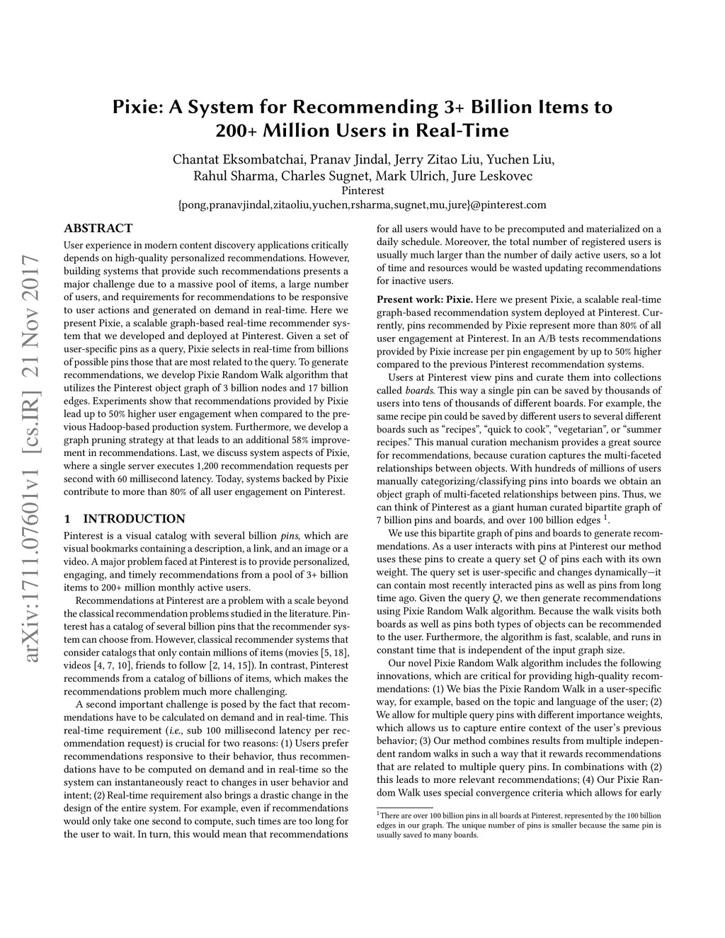 Pixie: A System for Recommending 3+ Billion Items to 200+ Million Users