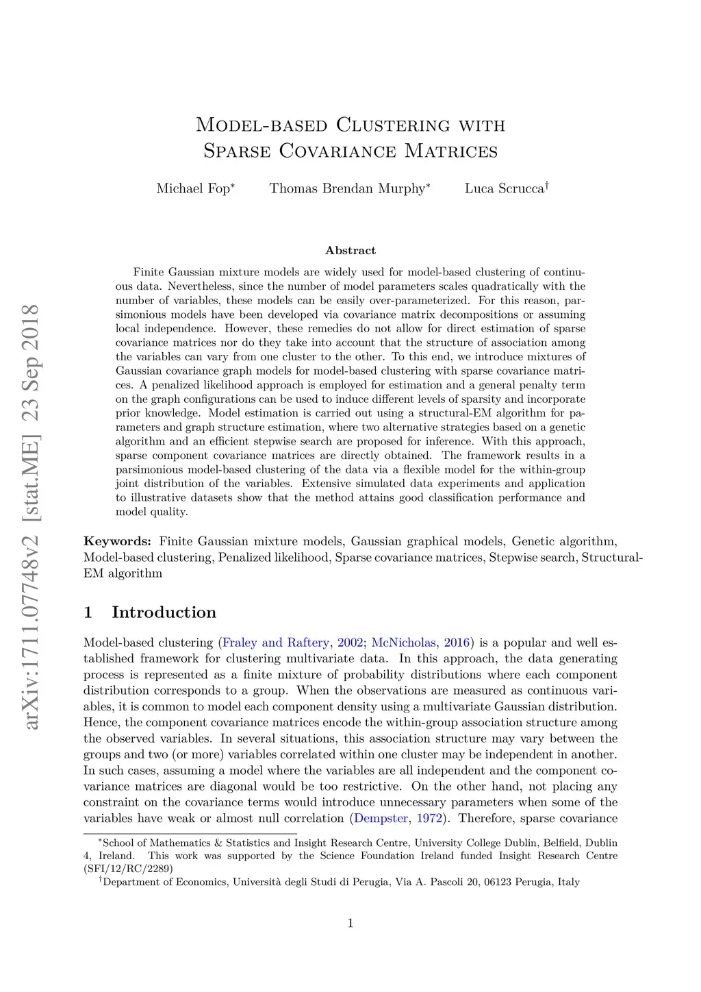 Finite Gaussian mixture models are widely used for model-based clustering of continuous data. Nevertheless, since the number of model parameters scales quadratically with the number of variables, these models can be easily over-parameterized. For this reason, parsimonious models have been developed via covariance matrix decompositions or assuming local independence. However, these remedies do not allow for direct estimation of sparse covariance matrices nor do they take into account that the structure of association among the variables can vary from one cluster to the other. To this end, we introduce mixtures of Gaussian covariance graph models for model-based clustering with sparse covariance matrices. A penalized likelihood approach is employed for estimation and a general penalty term on the graph configurations can be used to induce different levels of sparsity and incorporate prior knowledge. Model estimation is carried out using a structural-EM algorithm for parameters and graph structure estimation, where two alternative strategies based on a genetic algorithm and an efficient stepwise search are proposed for inference. With this approach, sparse component covariance matrices are directly obtained. The framework results in a parsimonious model-based clustering of the data via a flexible model for the within-group joint distribution of the variables. Extensive simulated data experiments and application to illustrative datasets show that the method attains good classification performance and model quality.