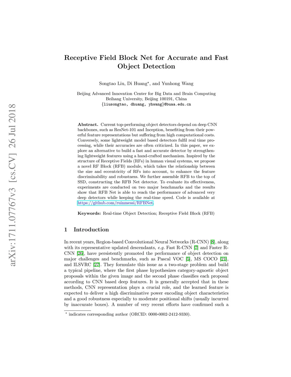 Receptive Field Block Net for Accurate and Fast Object Detection