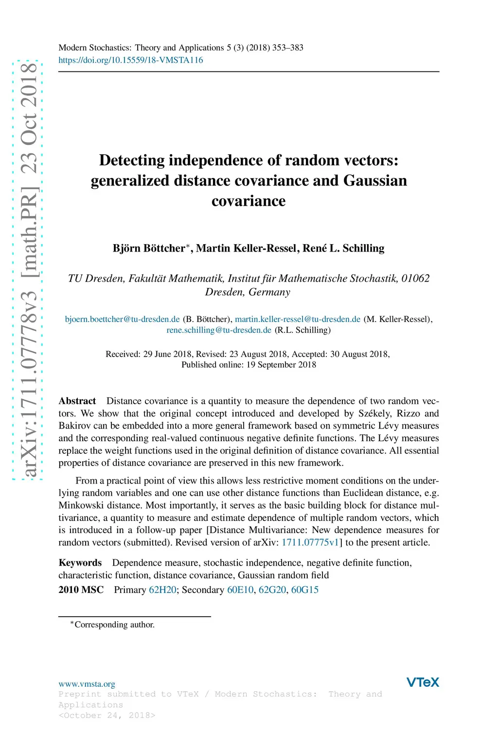 Distance covariance is a quantity to measure the dependence of two random vectors. We show that the original concept introduced and developed by Sz\'{e}kely, Rizzo and Bakirov can be embedded into a more general framework based on symmetric L\'evy measures and the corresponding real-valued continuous negative definite functions. The L\'evy measures replace the weight functions used in the original definition of distance covariance. All essential properties of distance covariance are preserved in this new framework. From a practical point of view this allows less restrictive moment conditions on the underlying random variables and one can use other distance functions than Euclidean distance, e.g. Minkowski distance. Most importantly, it serves as the basic building block for distance multivariance, a quantity to measure and estimate dependence of multiple random vectors, which is introduced in a follow-up paper [Distance multivariance: New dependence measures for random vectors] to the present article.